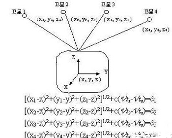GPS定位的基本原理是根據(jù)高速運(yùn)動的衛(wèi)星瞬間位置作為已知的起算數(shù)據(jù),采用空間距離后方交會的方法,確定待測點(diǎn)的位置。如下圖所示,假設(shè)t時刻在地面待測點(diǎn)上安置GPS接收機(jī),可以測定GPS信號到達(dá)接收機(jī)的時間△t,再加上接收機(jī)所接收到的衛(wèi)星星歷等其它數(shù)據(jù)可以確定以下四個方程式: