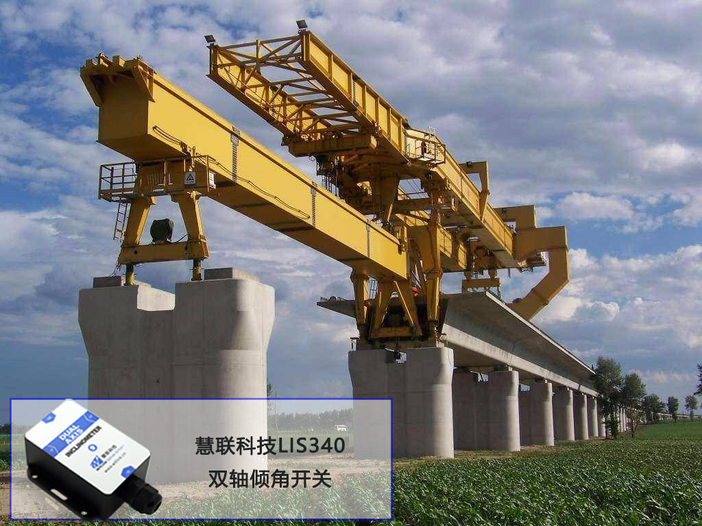 傾角傳感器能隨時(shí)探測(cè)出由于路基下陷而引起的探路輪對(duì)及架橋機(jī)車架的縱向、橫向傾斜角度。在探路輪對(duì)的作用下,若路基下陷量超過了規(guī)定值,或左右股道傾斜量超過了規(guī)定值,則監(jiān)測(cè)控制系統(tǒng)會(huì)及時(shí)報(bào)警,同時(shí)切斷驅(qū)動(dòng)電機(jī)電源,并通過制動(dòng)系統(tǒng)使架橋機(jī)緊急制動(dòng),保證架橋機(jī)不進(jìn)入不良地段, 避免架橋機(jī)傾覆。