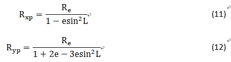 式中緯度L在緯度的即時(shí)修正中獲得,式中 Re為地球的赤道半徑,e為地球的橢球度。
