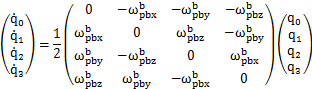 Q的即時(shí)修正可通過解下面的四元數(shù)微分方程來實(shí)現(xiàn):